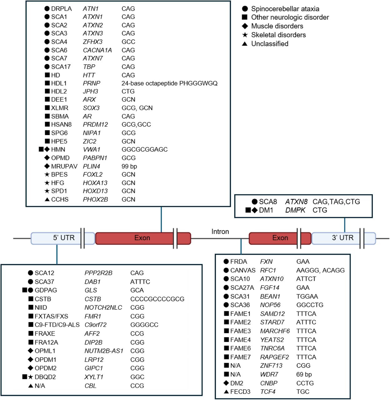 - 반복 서열의 정확한 구조(중단(interruption), motif 변화)는 알 수 없음